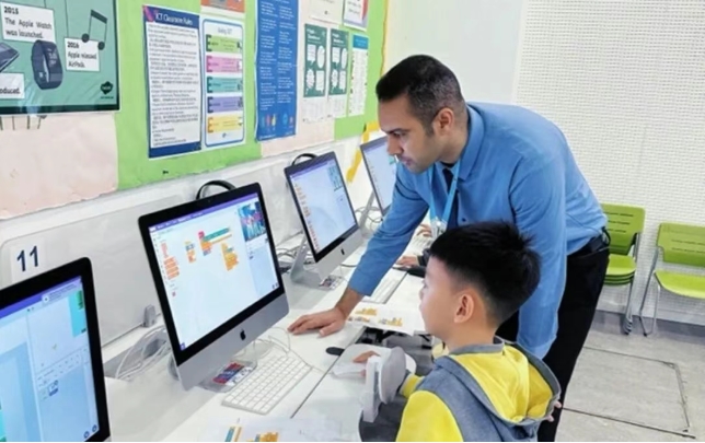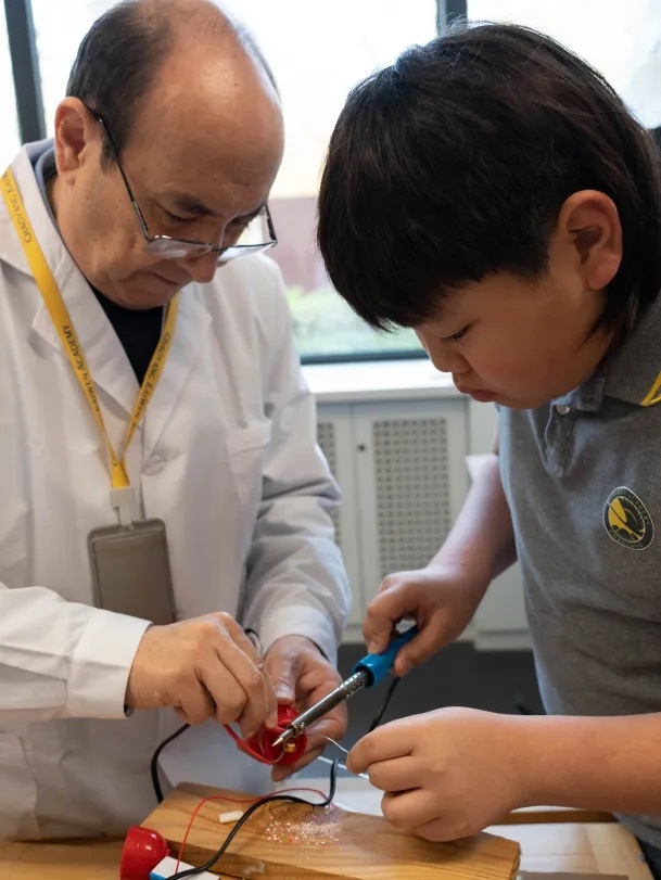 学校不仅配备了专业的科学实验室、适合低学段学生使用的安全工具,以及丰富的动手实验材料库,还把计算机编程纳入了小学基础教育课程。