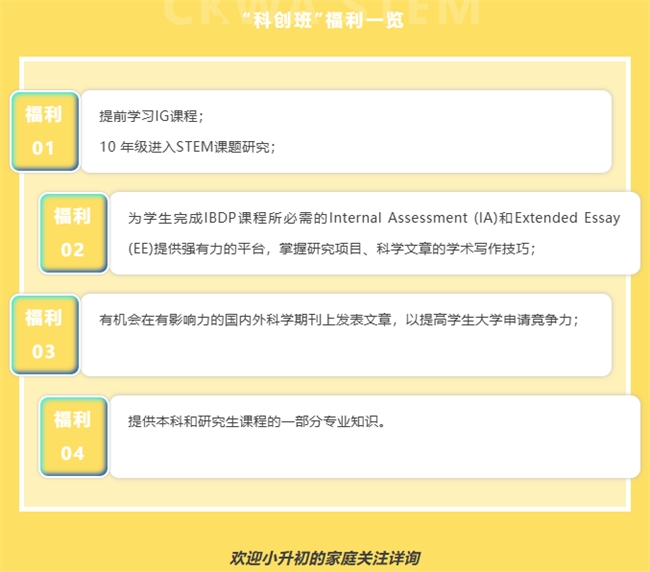 为帮助7-10年级的学生切实理解并应用跨学科知识,朝阳凯文设立了特色的“科创班”,让学生可开展跨学科项目学习、实践操作和创新挑战,提前学习物理、生物等课程。