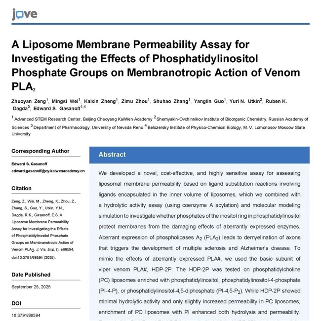 近期,朝阳凯文又接受了来自国际权威期刊《可视化实验期刊》(JoVE)的专访。该期刊由美国JoVE出版社运营,是全球首个以视频形式记录实验过程的学术期刊,更是被麻省理工学院、剑桥大学等顶尖学府长期订阅的权威期刊,发表具有先进实验技术或诺贝尔级实验方法的论文。报道中,STEM研究中心负责人Edward博士带领两位11年级学生参与了访谈。