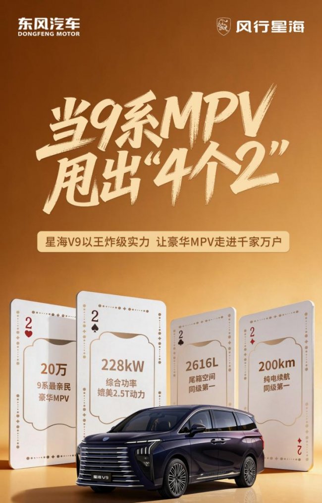 续航方面,马赫双擎混动系统实现200km纯电续航与1300km综合续航,纯电通勤每公里成本仅约0.12元,如果按每天通勤50km左右来测算,每月通勤费用月约180元,大幅降低出行开支,18分钟快充适配忙碌的职业女性生活节奏。星海V9凭借“4个2”核心实力,在20万内中大型新能源MPV市场持续热销,购车可享置换补贴、国家叠加补贴与露营礼包,以全能表现陪伴女性走过每一段美好旅程。